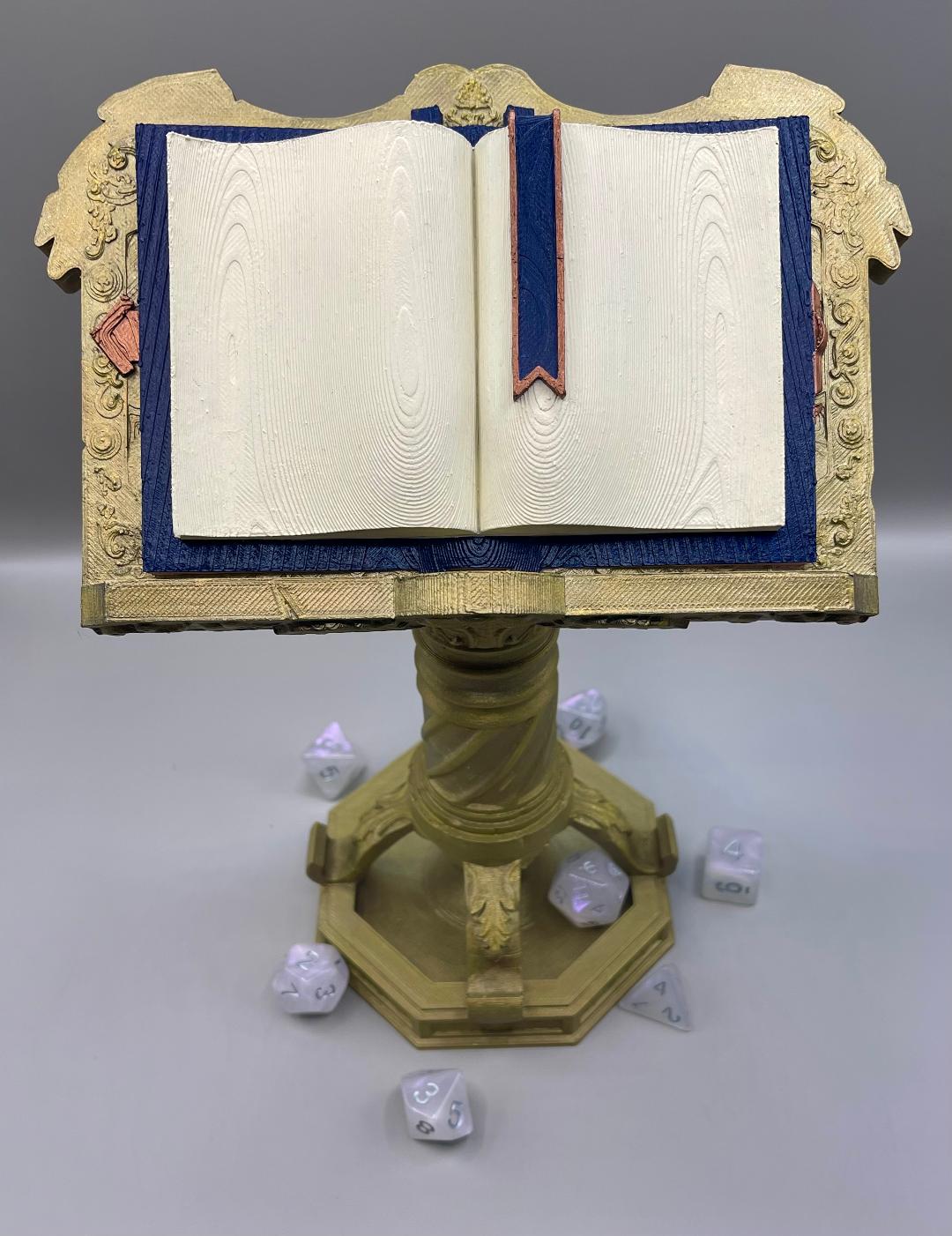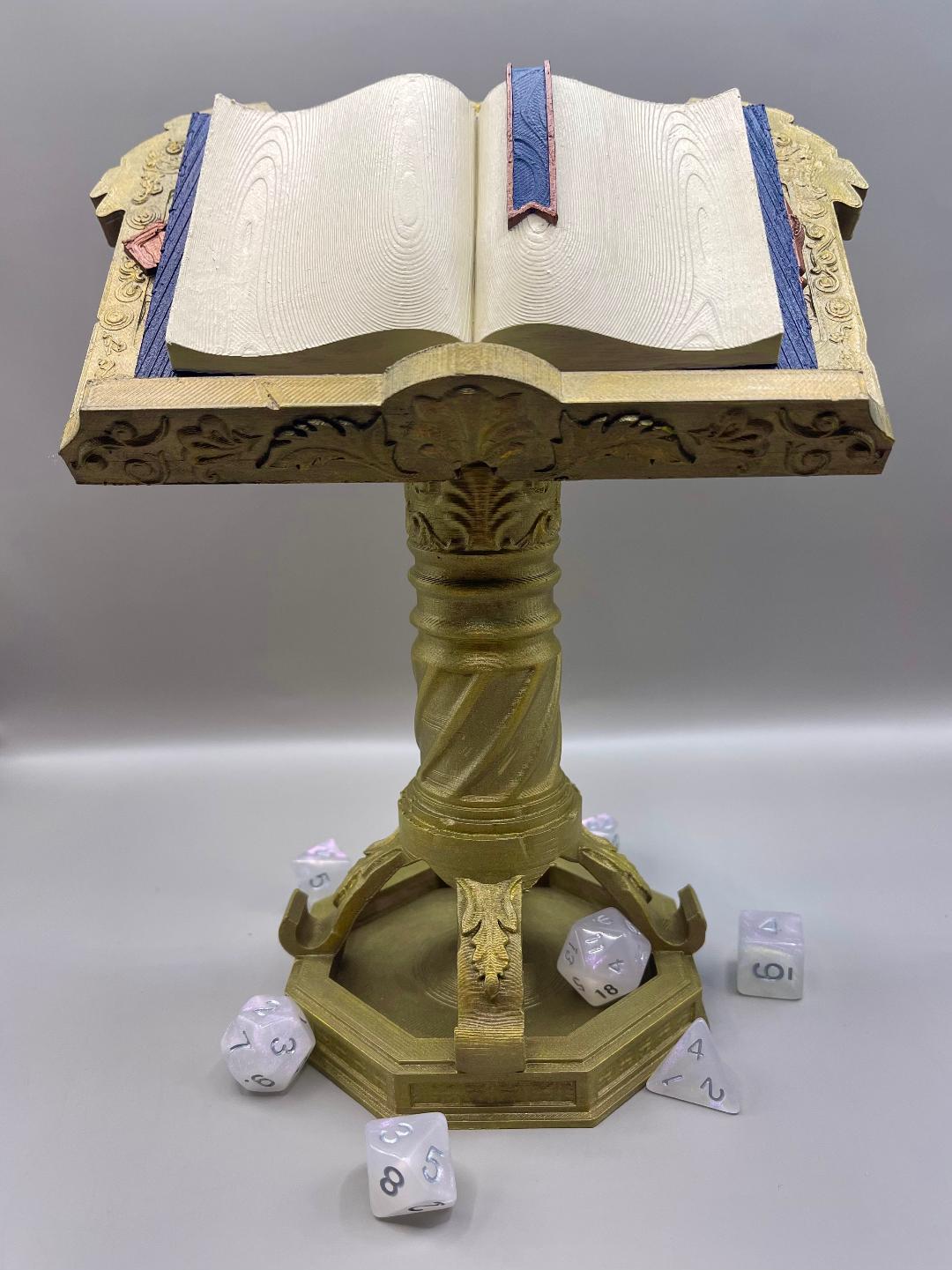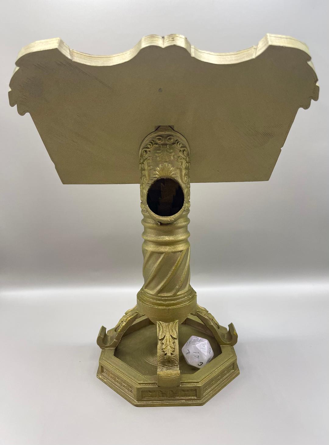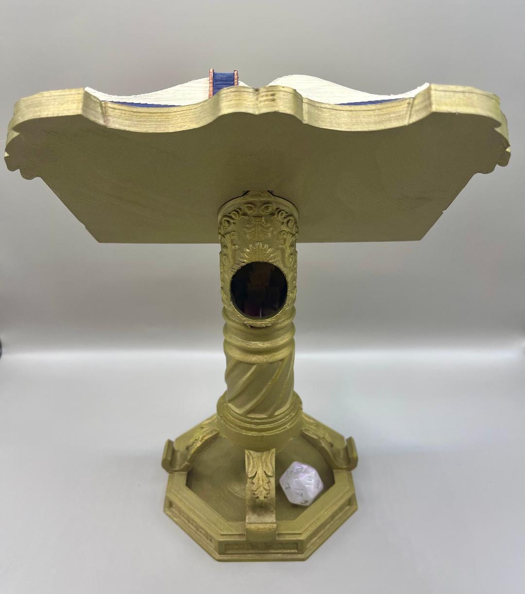 This gold dice roller is perfect for keeping your dice and spells in one spot!