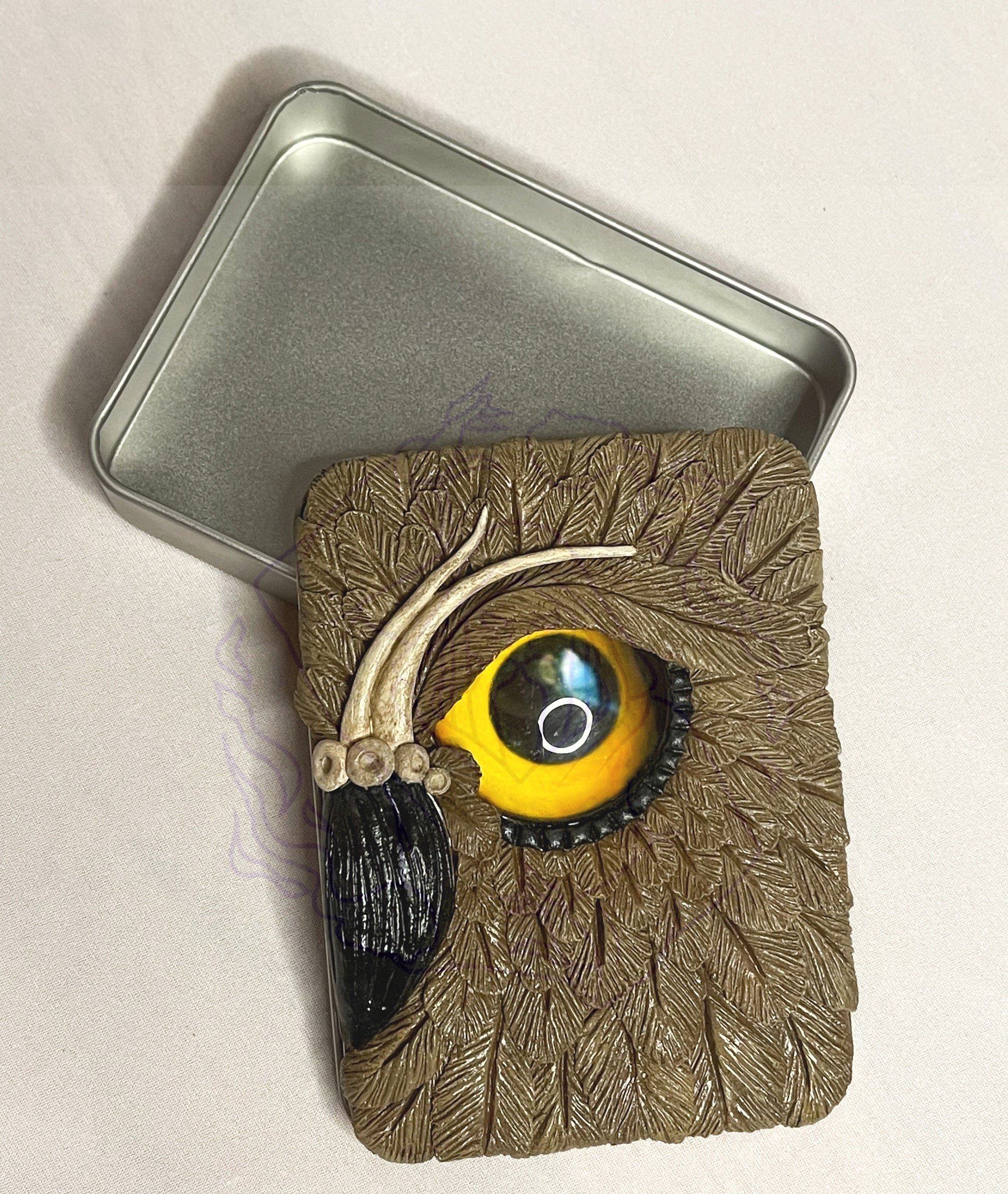 These tins are hand sculpted, painted, and sealed with polyacrylic to prevent paint chipping and damage!